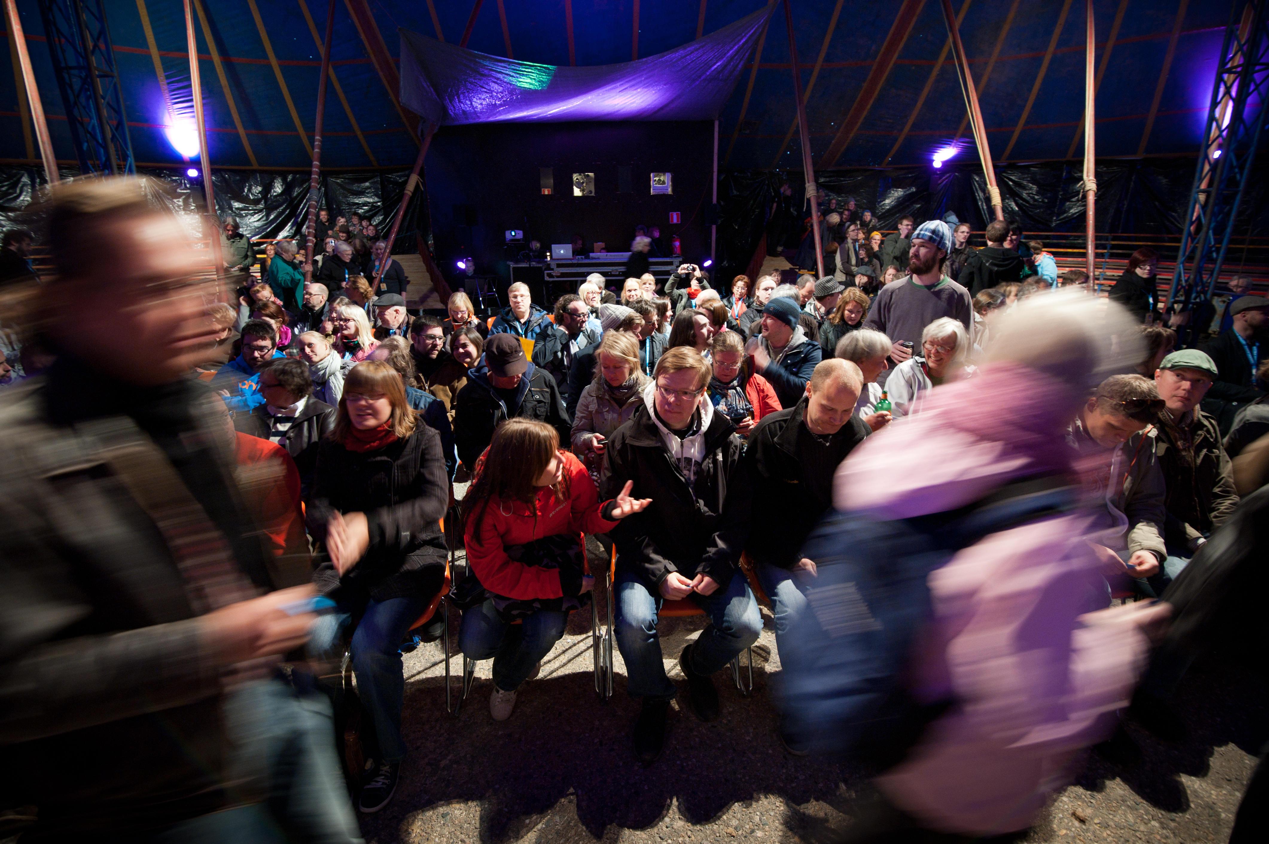 Metropoliksen yleisöä ennen mykkäesityksen alkua