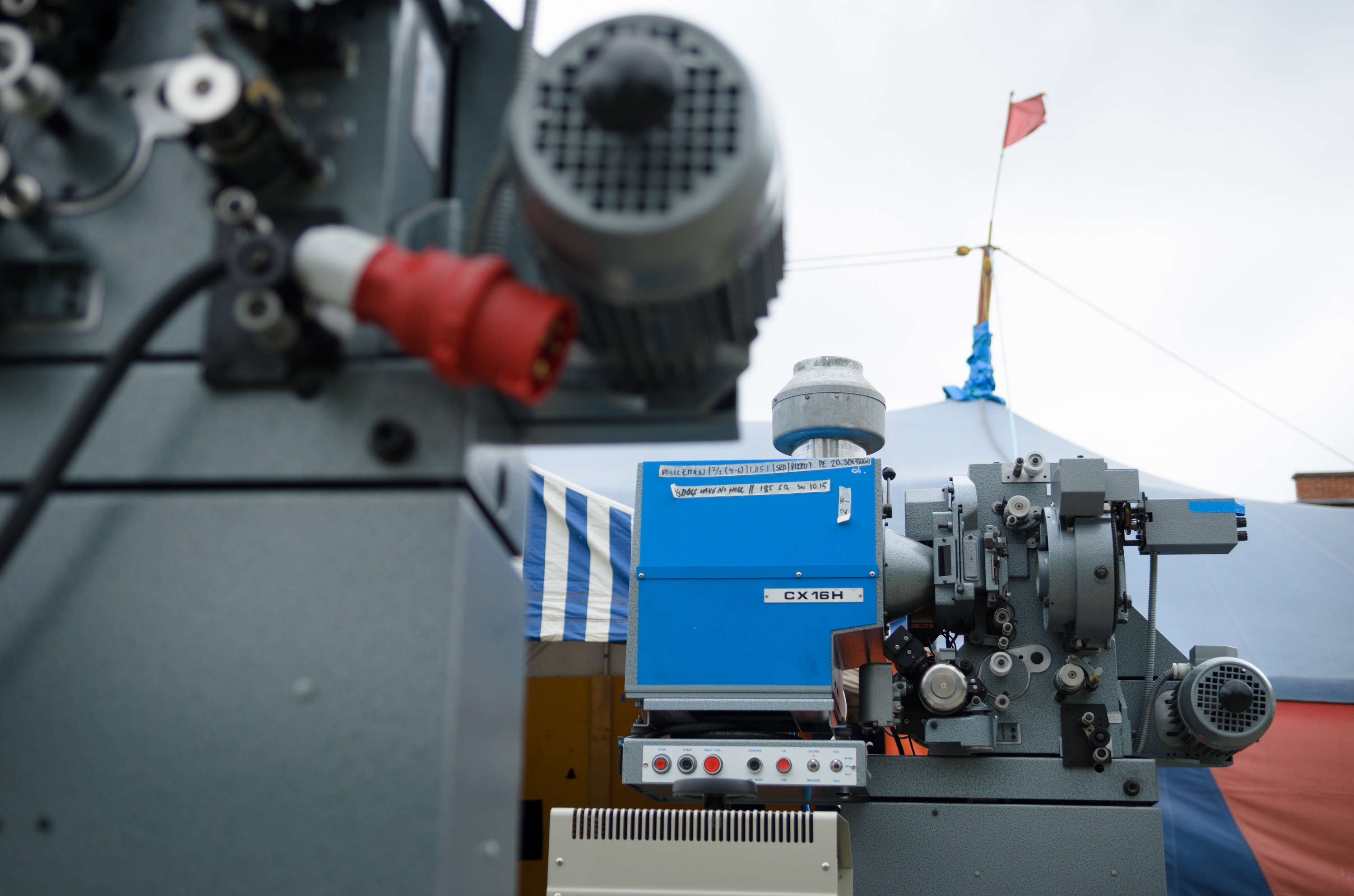 Pikkuteltan projektorit tuulisena ja koleana tiistaina