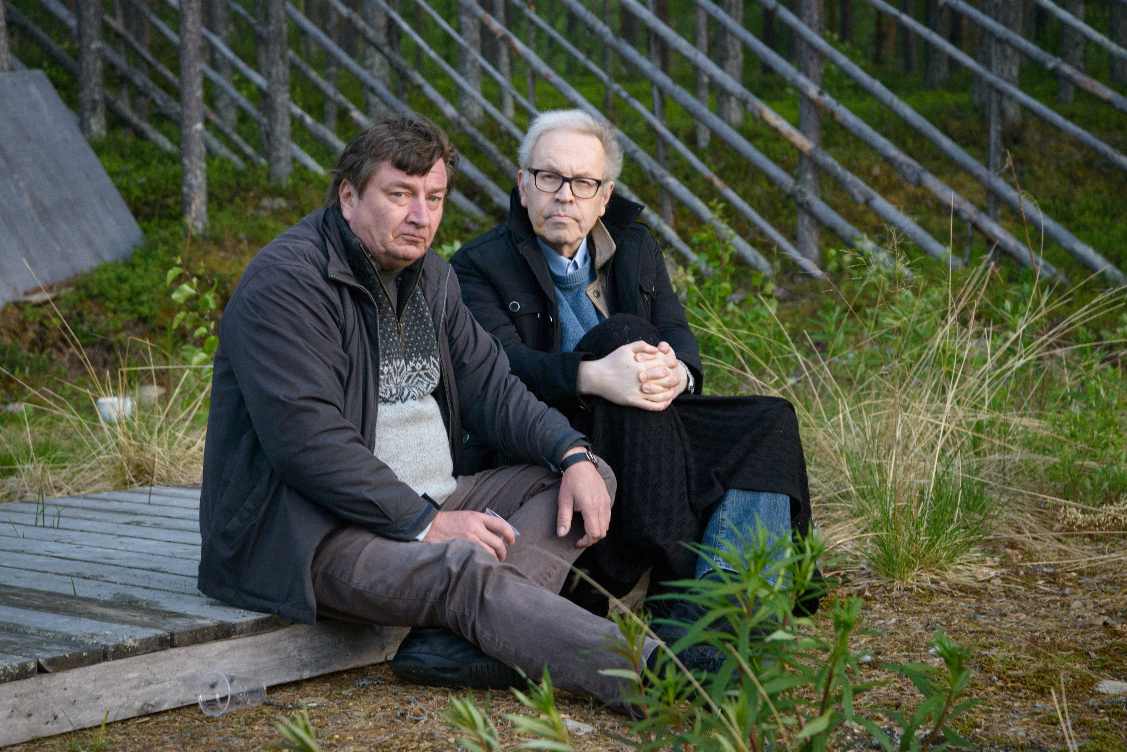 Aki ja Peter pehmeässä iltavalossa